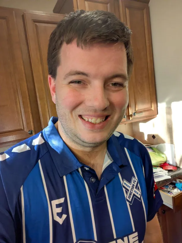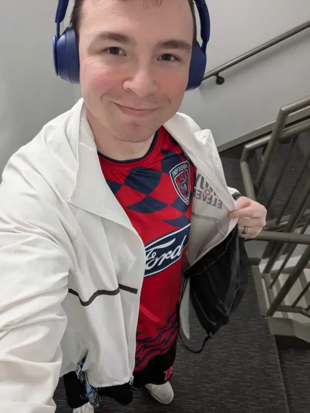 Brett is rocking the 2025 Indy Eleven Red Checkers Kit, while Fox is going with West Seattle Junction's Admiral Kit from 2025!