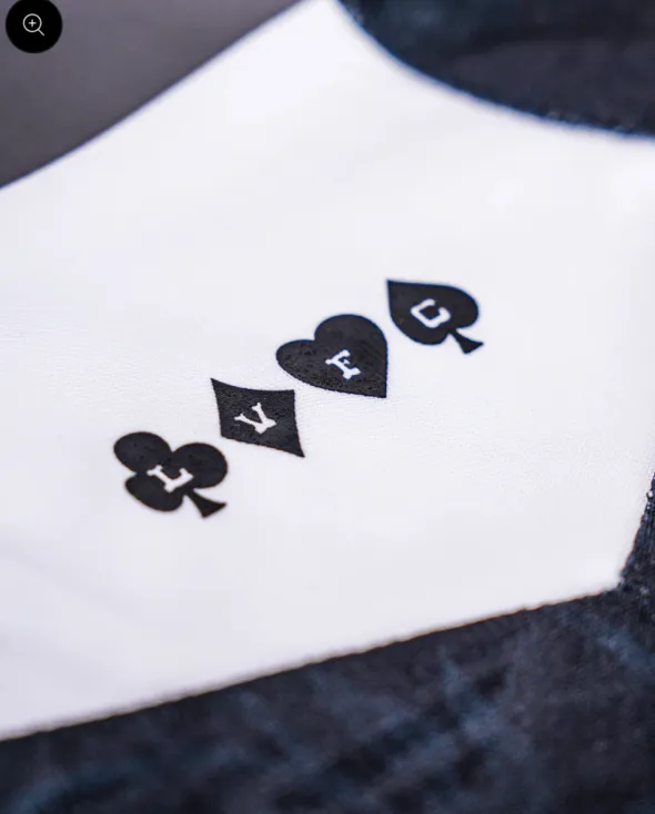 A simple white front half collar outlines the front and backside really well. The back portion contains the four symbols found in poker cards. It is a subtle Vegas vibed filled kit that gets better the more you dive into. The devil is in the details.