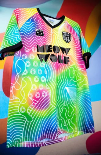 Meow Wolf and New Mexico United maybe one of the best partnerships in soccer. For those unaware, here is Meow Wolf’s own website for reference, but basically they are known for creating immersive experiences with lots of colors and art. Add in New Mexico’s knack for having fun kits, it’s a perfect combination in our eyes.