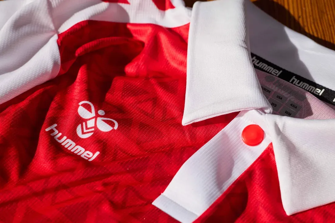 The kit is built on a classic silhouette, featuring a rib-knit polo collar finished with a single red button for a timeless look. Blue and red striped cuffs accent the white sleeves and a 3D silicone crest with a textured weave creates a premium finish.