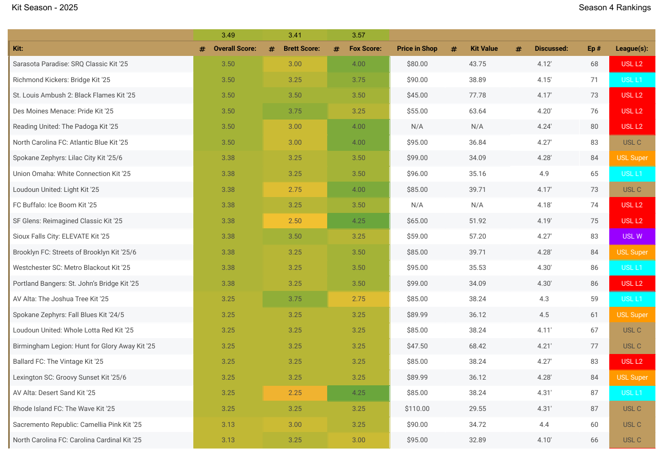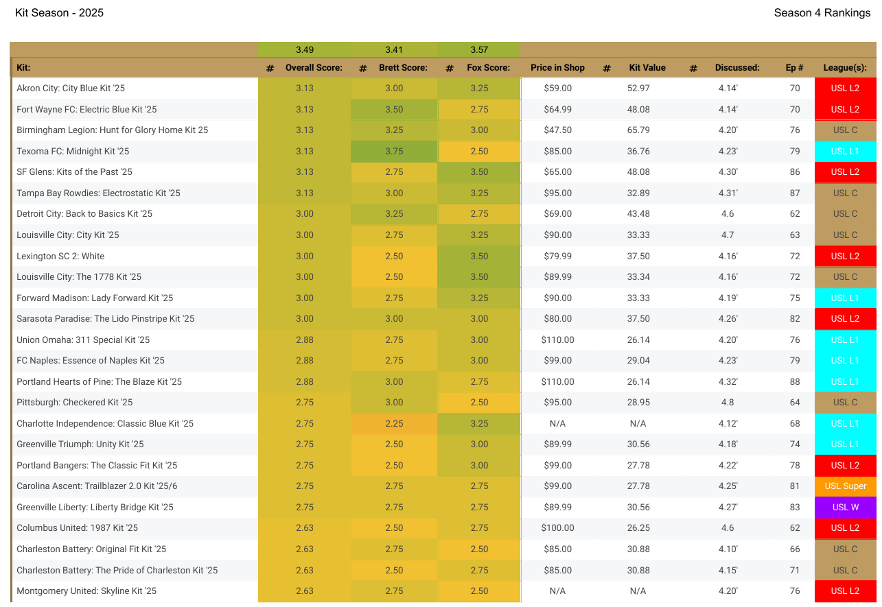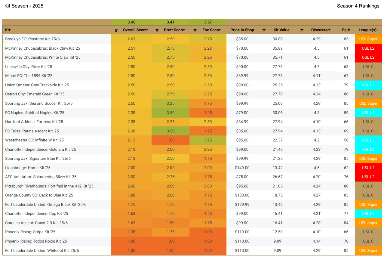 Today the team dives into some kit analytics from 2025 from all the leagues in the USL, gives our best and worst kits, and a solid conversation to end the season.