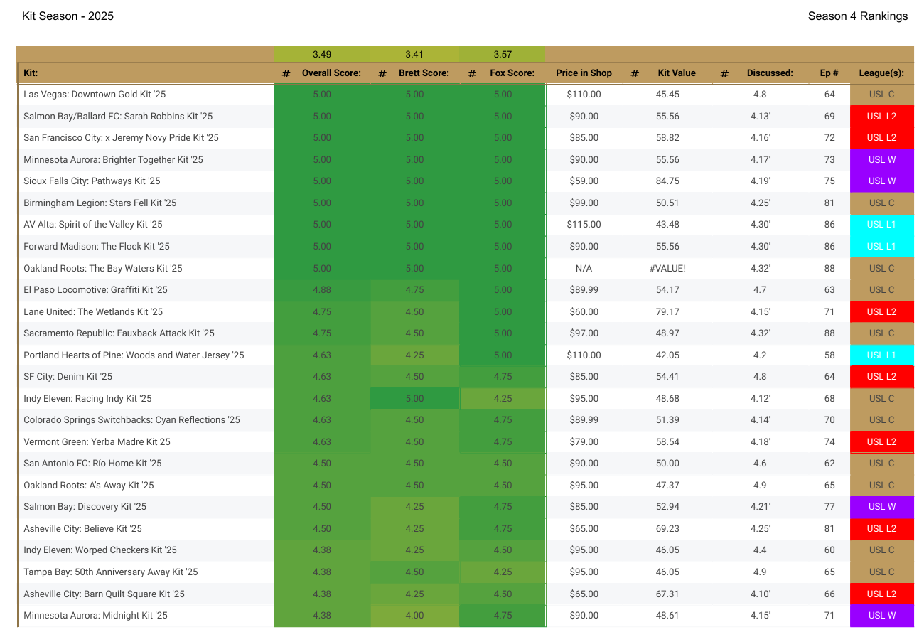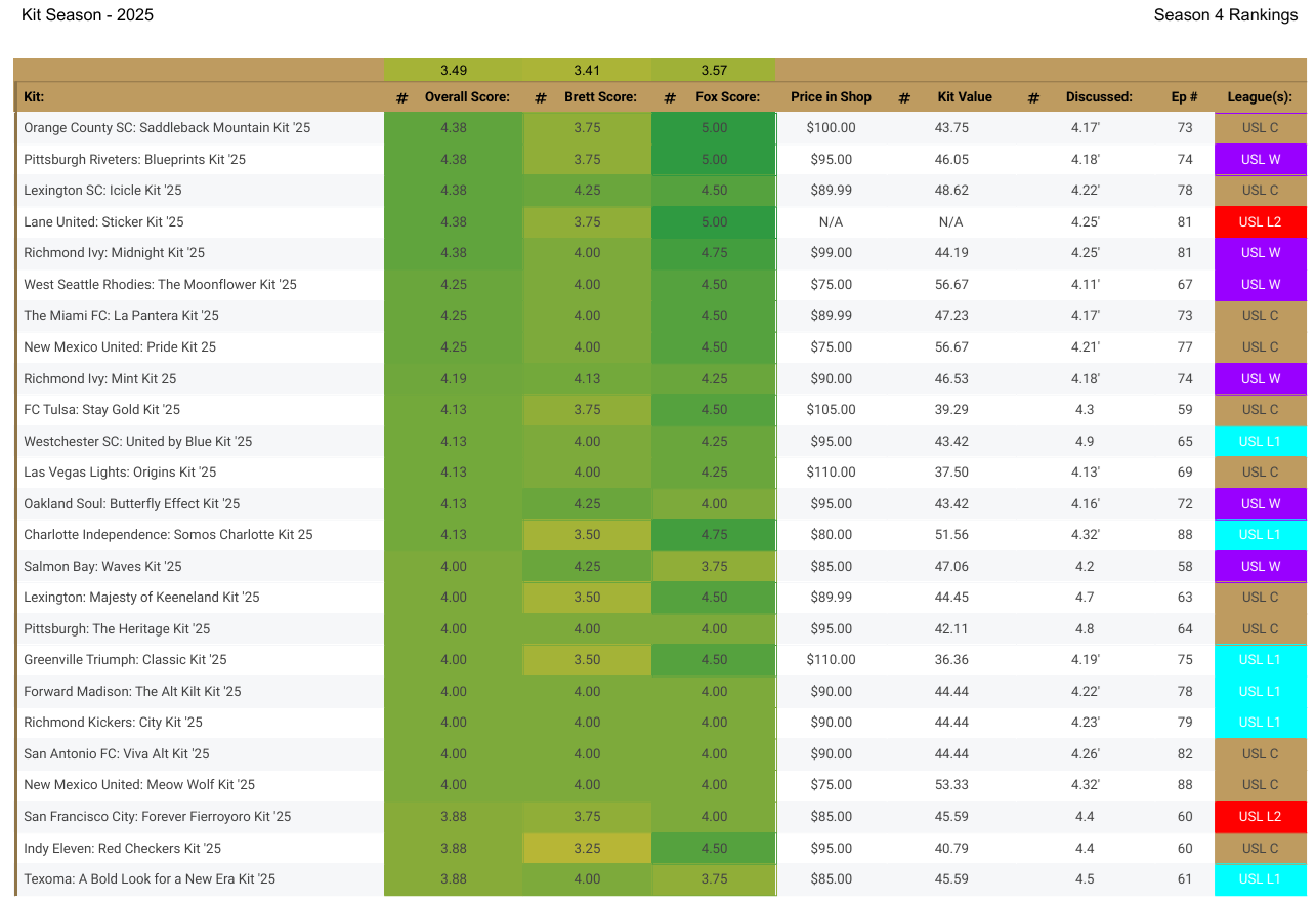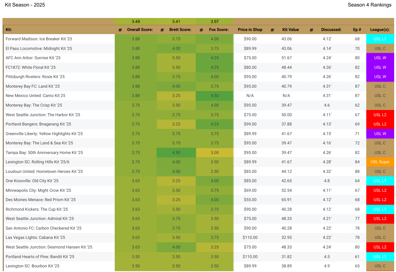 Today the team dives into some kit analytics from 2025 from all the leagues in the USL, gives our best and worst kits, and a solid conversation to end the season.