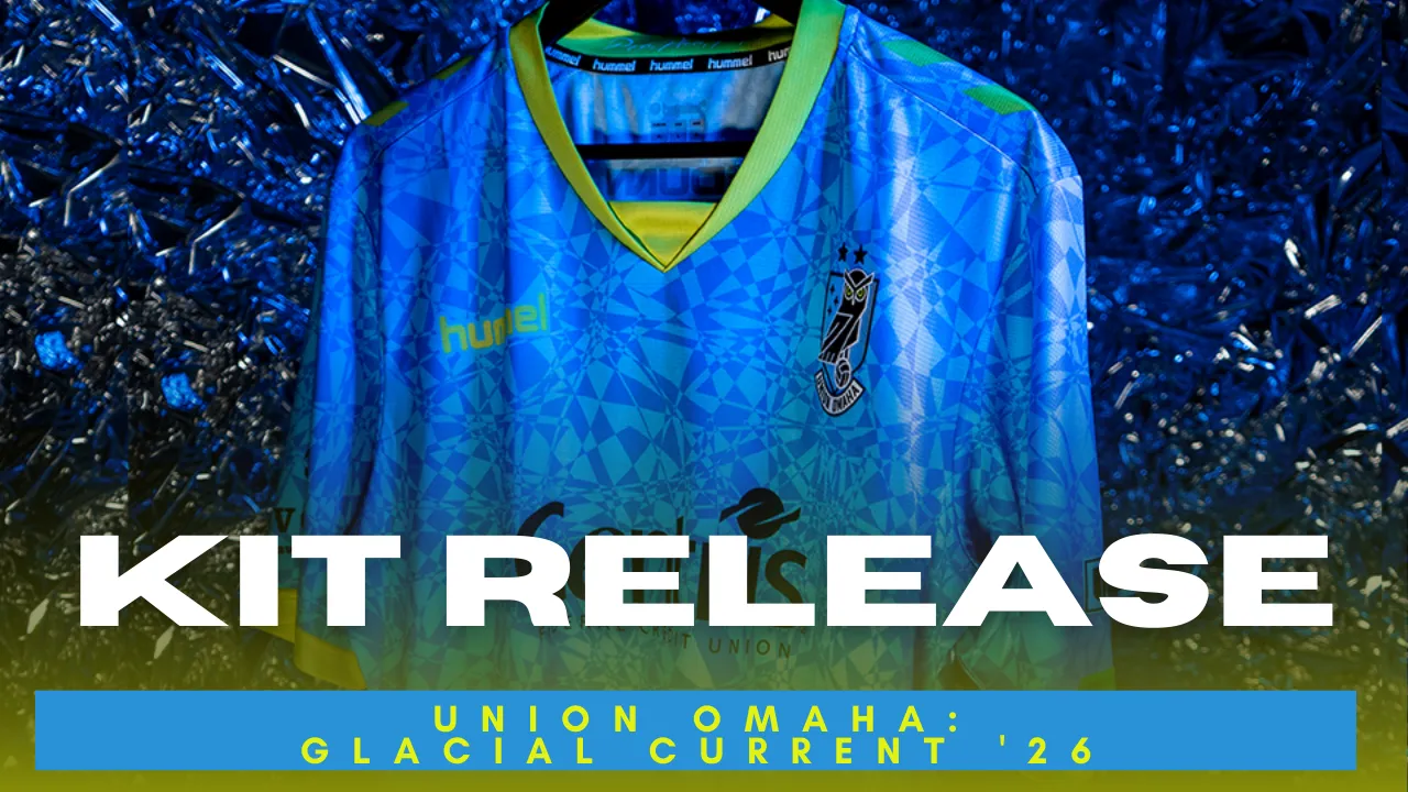 Drawn from Nebraska’s winter landscape, the Glacial Current Kit reflects quiet strength, resilience, and shared purpose. Its fractured pattern represents individuality bound together by an underlying current — a reminder that our greatest strength comes from moving forward as one. Built for the road, this kit carries Omaha’s identity wherever the match takes us.